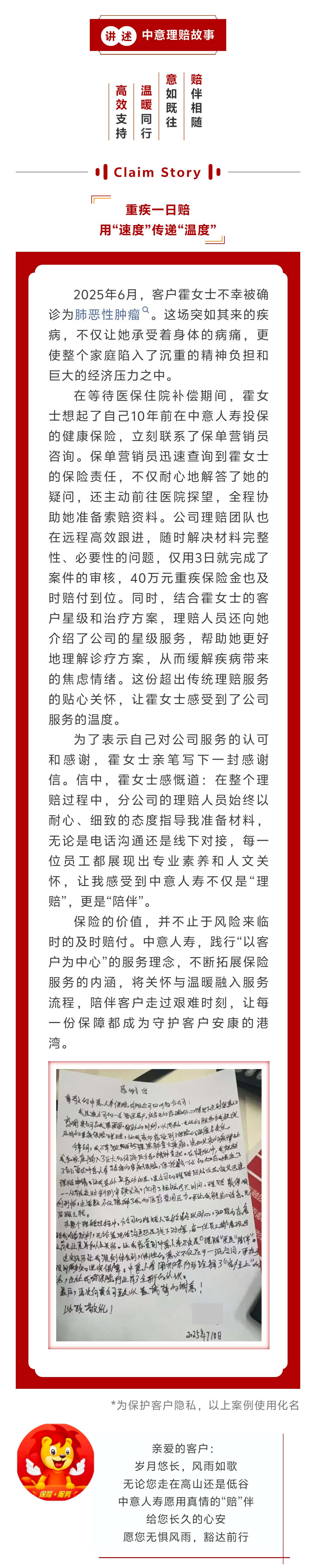 中意“赔”伴 | 重疾一日赔,用“速度”传递“温度”
