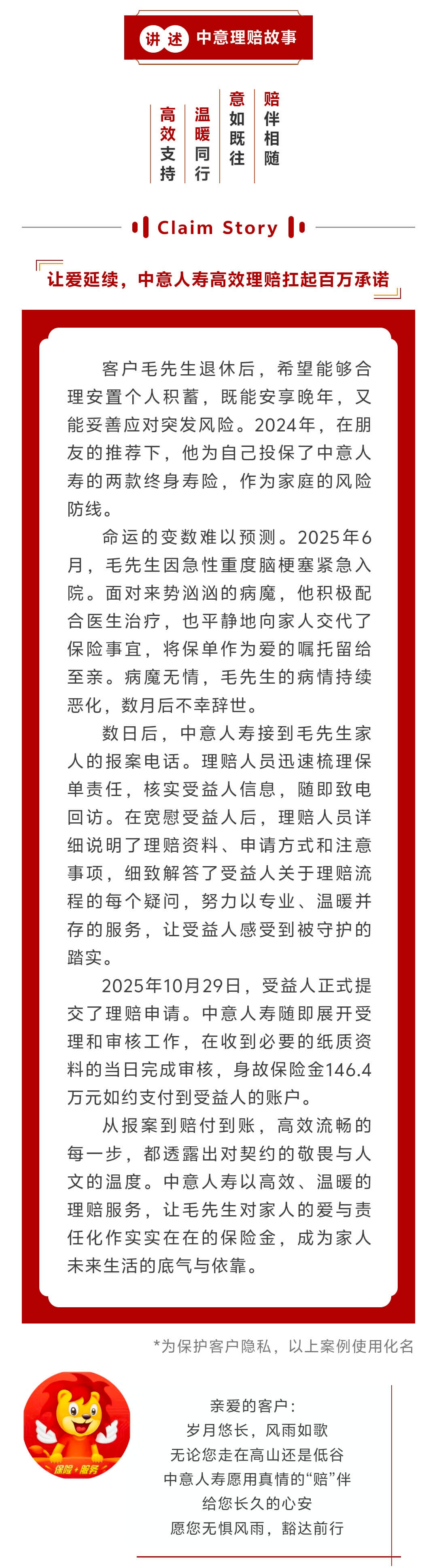 中意“赔”伴 | 让爱延续,中意人寿高效理赔扛起百万承诺