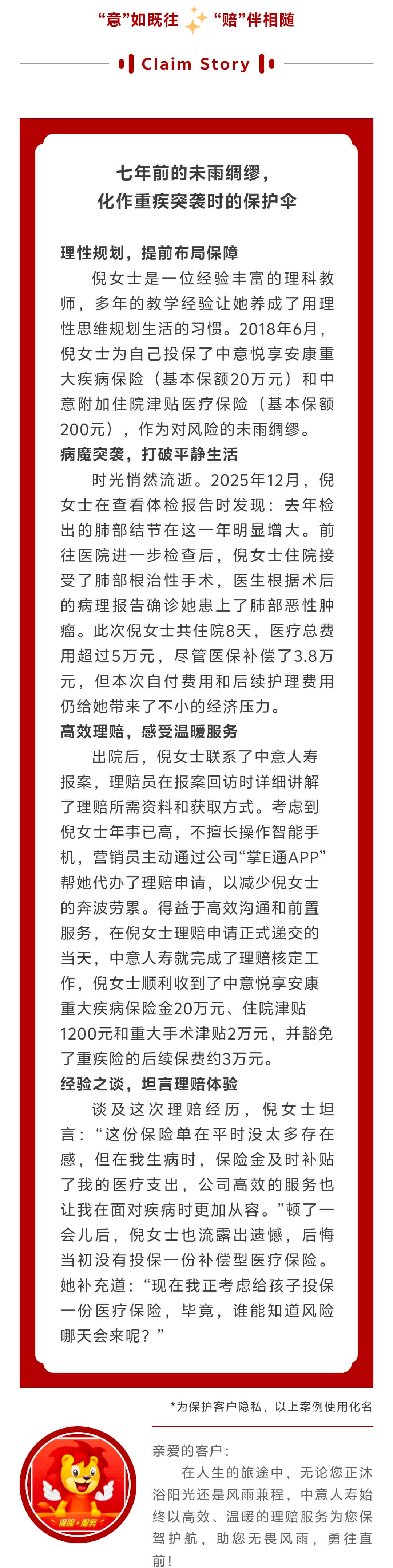 中意“赔”伴 |七年前的未雨绸缪,化作重疾突袭时的保护伞