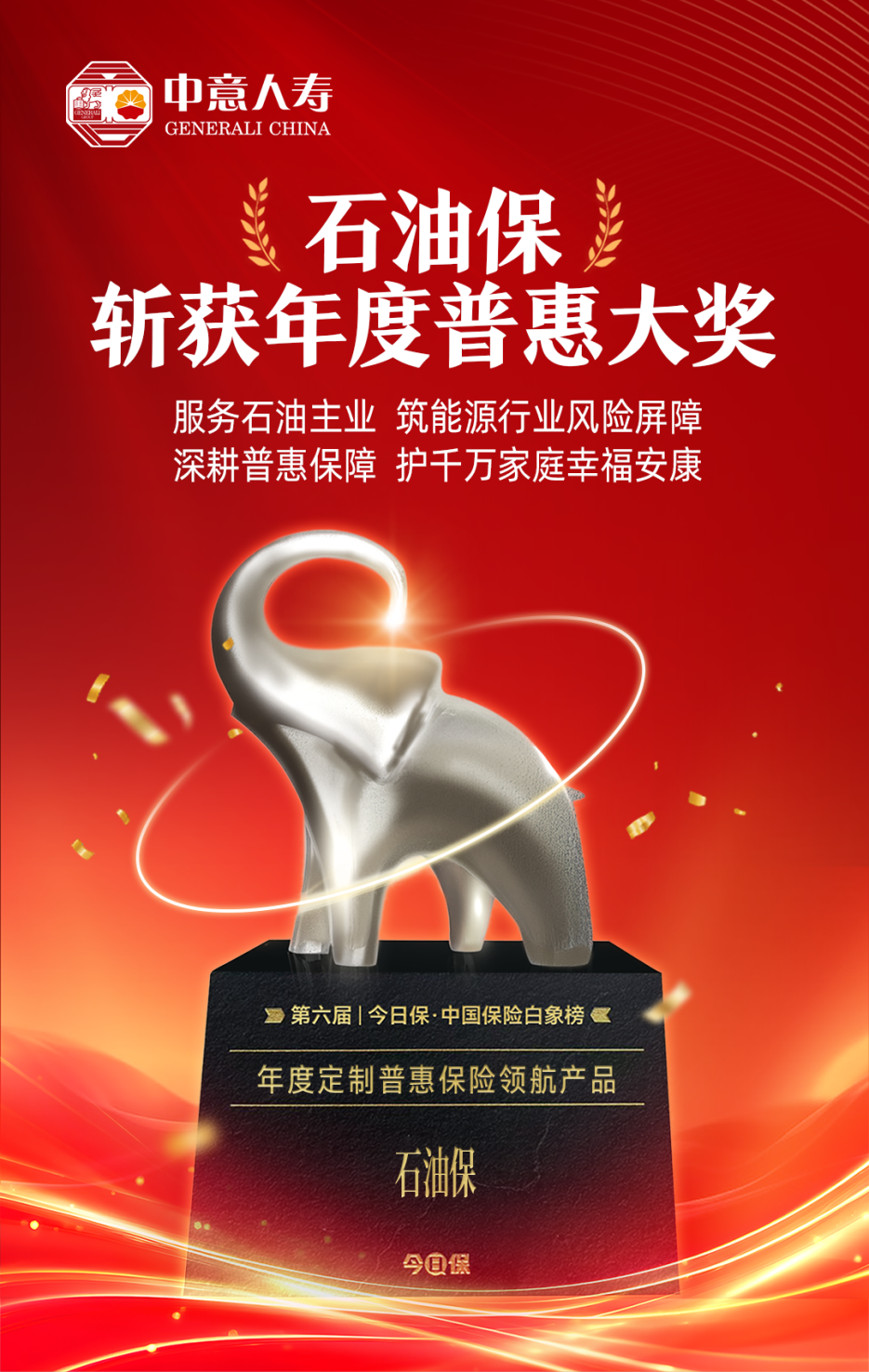 2025年12月18日,2026年度今日保・保险白象榜重磅揭晓,中意人寿专为中国石油天然气集团有限公司(简称“中国石油”)各级单位及上下游企业定制的中意普惠石油保石油企业员工自选保险产品计划(简称“石油保”),凭借对石油人风险需求的精准响应与普惠保障的扎实落地,荣获“年度定制普惠保险领航产品”殊荣。这一行业权威奖项,不仅是对“石油保”产品本身的高度认可,更彰显了公司作为石油金融企业,深耕主业、守护石油人的责任担当。